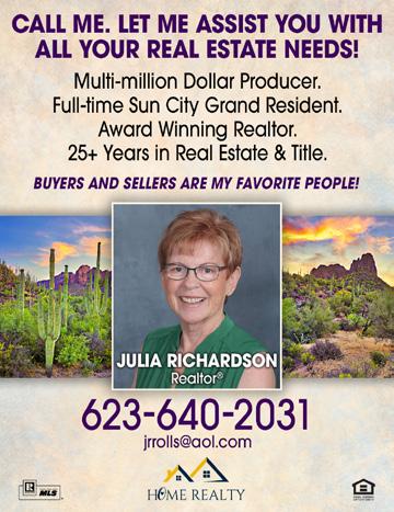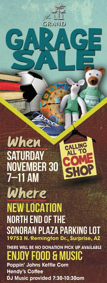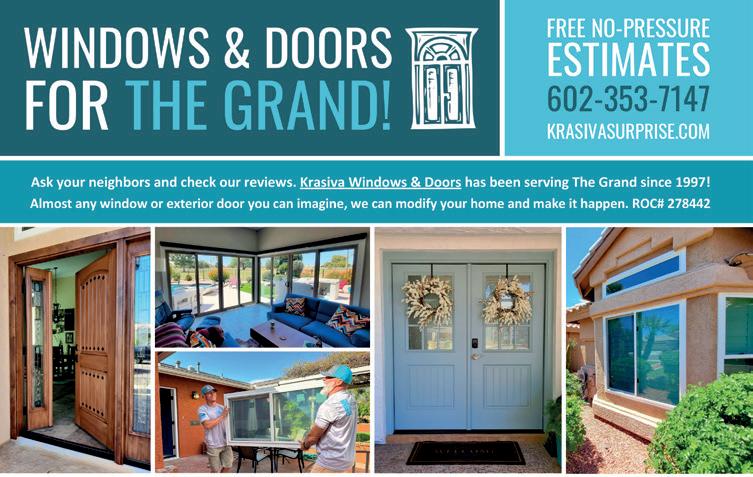 The Association provides this publication for informational purposes only. SCG Community Association, its Board, its employees and all other entities within SCG do not guarantee, endorse, nor promote any of the products, services or individuals advertised herein and assume no responsibility or liability for the veracity of the statements made in this publication. Information regarding advertising rates can be obtained on our website at www.livegrandaz.com/Communications/GrandLifestyles-magazine, scroll down to Grand Lifestyles Advertising. The deadline for