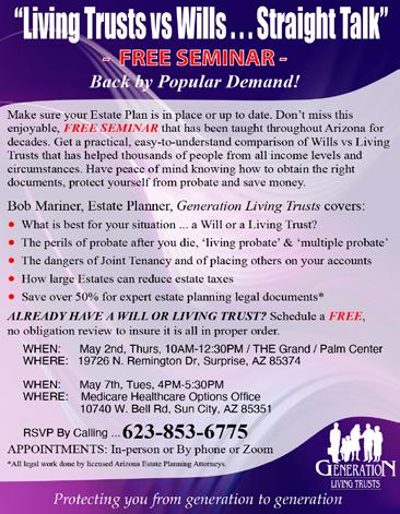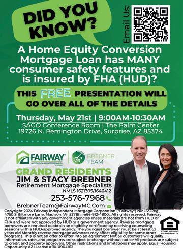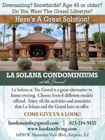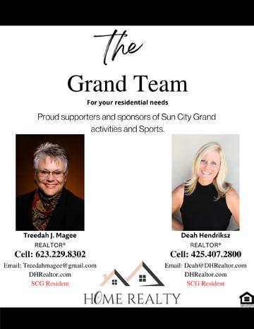 The Association provides this publication for informational purposes only. SCG Community Association, its Board, its employees and all other entities within SCG do not guarantee, endorse, nor promote any of the products, services or individuals advertised herein and assume no responsibility or liability for the veracity of the statements made in this publication. Information regarding advertising rates can be obtained on our website at www.livegrandaz.com/Communications/GrandLifestyles-magazine, scroll down to Grand Lifestyles Advertising. The deadline for commercial ads is the 10th of the month prior to placement. Sun City Grand Community Association, Inc. reserves the right to revise or refuse submitted articles and/or ads. If you have any questions about the Grand Lifestyles, please feel free to contact the Activities Office at 623-546-7452.