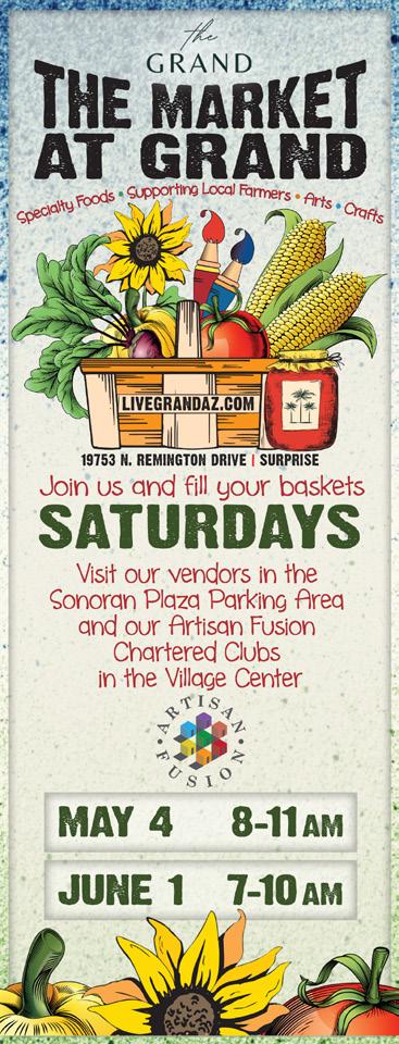 Mark your calendars…we are extending the Market at Grand through June. Join us the first Saturday in May, the 4th from 8-11am and June 1st from 7-10am. Come out and support local vendors and visit with our Chartered Club Artisan Fusion in the Village Center.