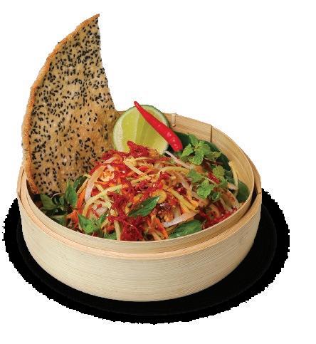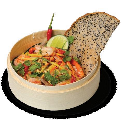 Green mango, Shrimp, Mint, Basil, Carrot, Cilantro, Sesame, Fried shallots, Peanuts