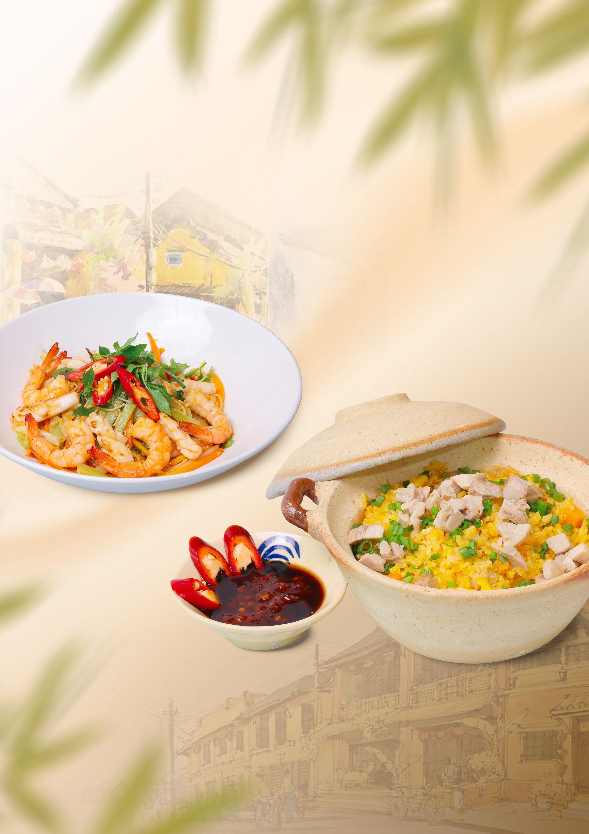hợp giữa nét tinh tế, hiện đại nhưng vẫn mang hơi hướng đặc trưng của ấm thực phố Hội. Gam màu xanh rêu kết hợp cùng ánh sáng lồng đèn tôn vinh nét đẹp riêng trong từng góc phố, từng mái nhà để bạn dường như tìm lại được những ngày xưa cũ, những ký ức đẹp của tuổi thơ trên mảnh đất Hội An vô cùng thân quen này.