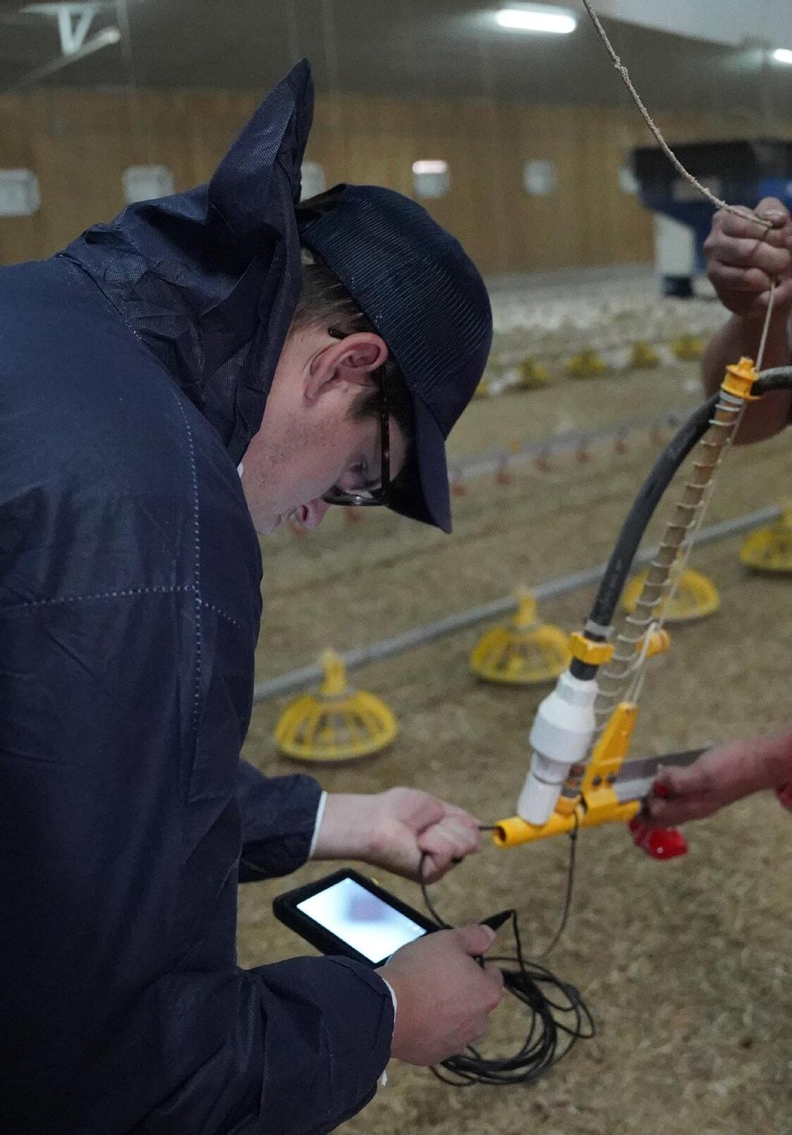 Hands should be washed before and after handling birds from different barns, or disposable gloves should be used. Movement between barns should always start with the youngest flocks. Equipment must be cleaned and disinfected before entering the RAZ.