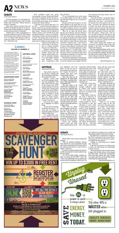 Both candidates agreed that giving young people a strong, educational foundation is key to speeding up slow recovery of but their incentives are importantly dif- the economy; however, in terms of the role ferent,” said Paul Reitemeier, chair of Grand of the federal government in the equation, Valley State University’s Human Research Romney and Obama differed. Review Committee. “And what we’re seeing right now is, in Both would require coverage with cash my view, — a trickle-down government appenalties for people choosing to not buy in- proach, which has government thinking it surance and inversed penalties for employers can do a better job than free people pursuing not providing insurance to employees. their dreams,” Romney said in response to “Neither plan is fully comprehensive in Obama’s plans to hire 100,000 more math coverage; estimates are that by 2022 Obama and science teachers. “And it’s not working. would reduce those without insurance from And the proof of that is 23 million people out 47 to 27 million while Romney would in- of work. The proof of that is one out of six crease the number of uncovered to 72 mil- people in poverty. The proof of that is we’ve lion,” Reitemeier said. gone from 32 million on food stamps to 47 million on food stamps. The proof of that is that 50 percent of college graduates this year can’t find work.” Romney’s indication that Volume 47, Number 14 he wants to cut taxes on the The Grand Valley Lanthorn wealthy, Obama said, will is published twice-weekly by EDITORIAL STAFF require cutting federal supGrand Valley State University port for education, backing students 62 times a year. Editor-in-Chief it up with budget numbers One copy of this newspaper ANYA ZENTMEYER from Romney’s running is available free of charge to Associate Editor any member of the Grand mate, Congressman Paul