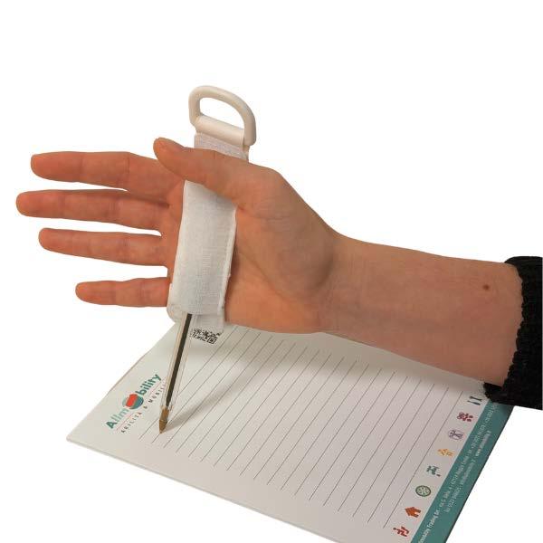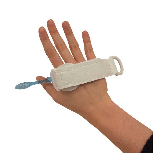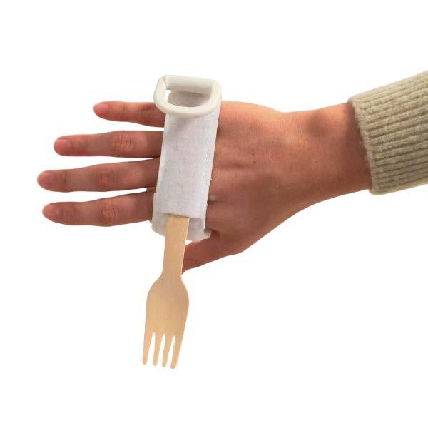 , perfect for using cutlery, utensils, and writing tools. It leaves the fingers free while allowing moved with an open palm. The ergonomic design and loop closure make it easy to adjust the strap the hand and the object. Suitable for tetraplegics, people with rheumatoid arthritis, finger tiffness, neurological disorders, children with upper limb motor difficulties, such as cerebral palsy or muscular dystrophies.