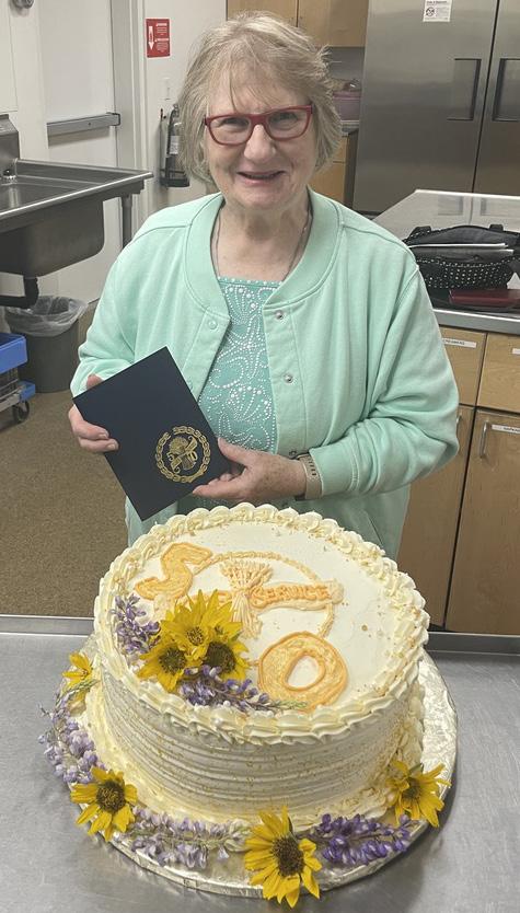 Linda Williams, long-term resident of Klickitat County, Washington, was honored on May 24th at Goldendale Grange #49. She was presented with the 50-year Golden Sheaf for her longevity in the Grange. A beautiful cake was made for the occasion and shared with fellow Grangers in attendance.