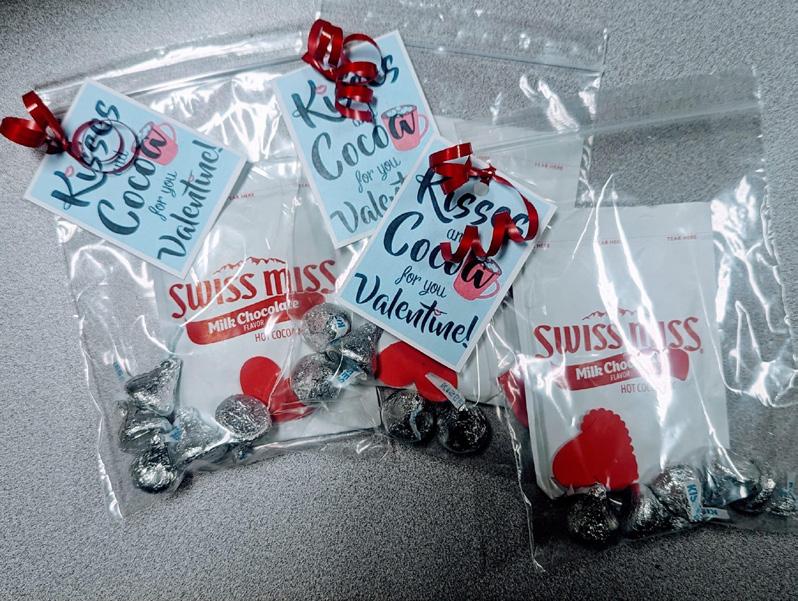 The Grange’s February meeting consisted of packaging hot cocoa and Hershey kisses for a Valentine treat delivered to another local senior living center.