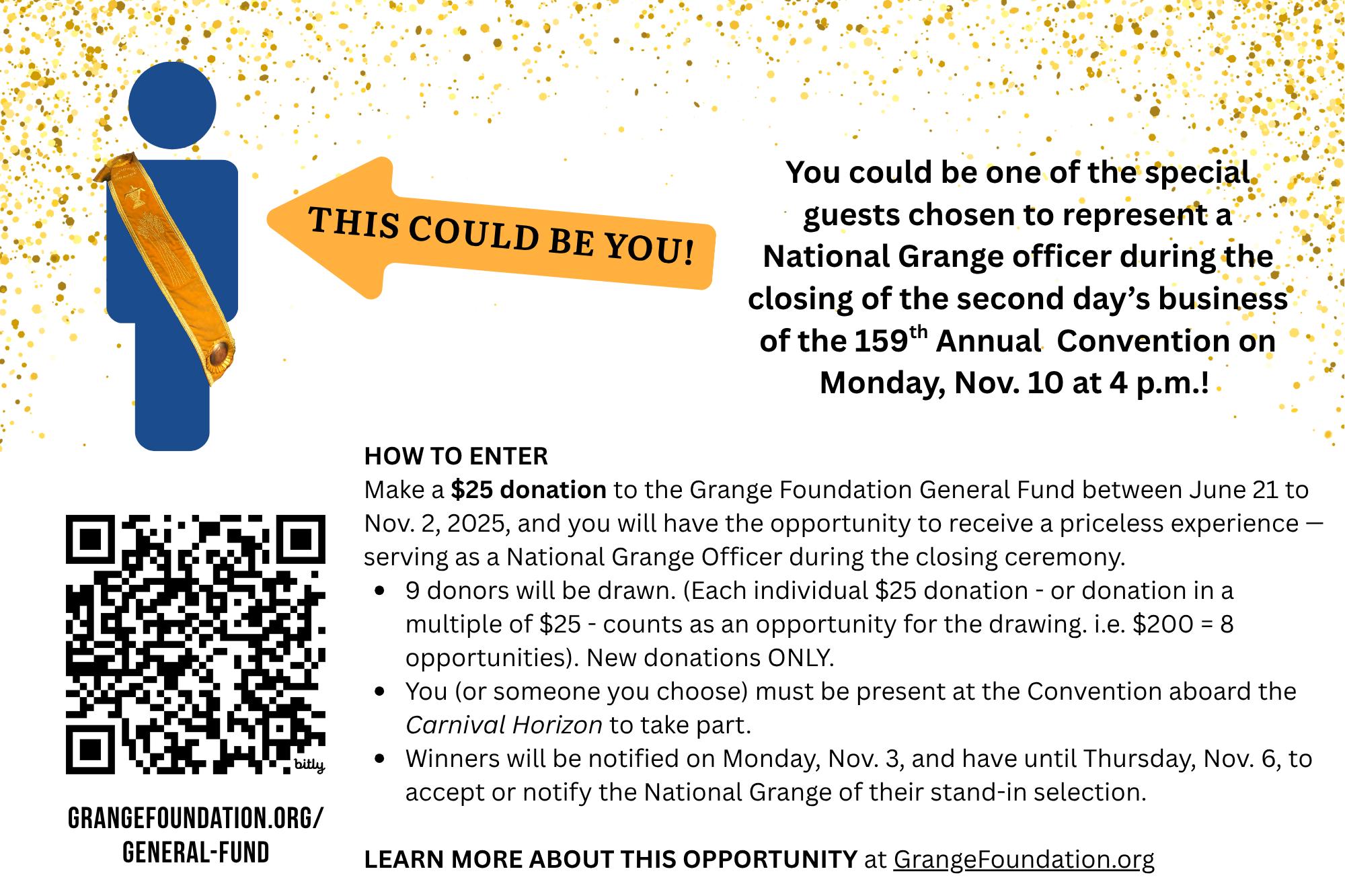 We’re aiming for 100% participation—so get out in your communities, represent your Grange with pride, and inspire others with your leadership. Let’s show the strength of our State Grange leaders as we grow, serve, and lead together.