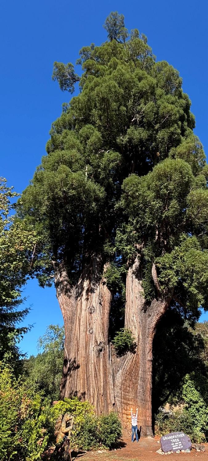 October 7: The drive from Sacramento to Humboldt County for the 150th annual convention of the California State Grange included a stretch of the beautiful Redwood Highway. Here I provide scale to the famous Grandfather Tree.