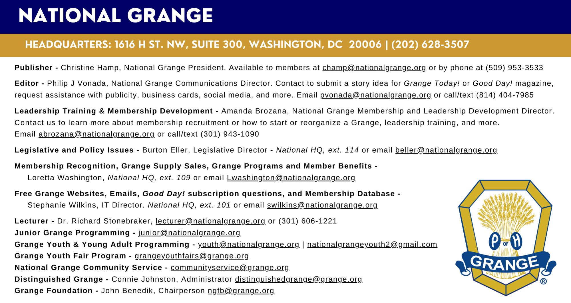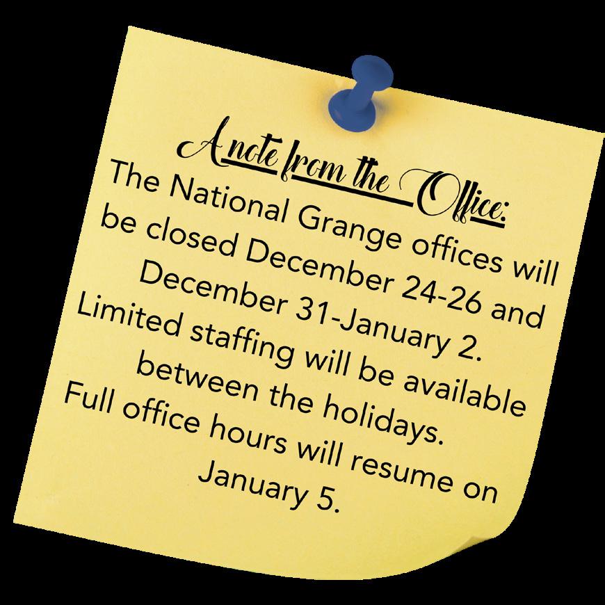 There are big things on the horizon - be sure that you and your Grange are part of the story and action.