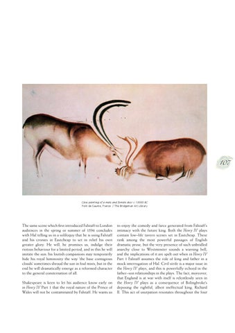 to enjoy the comedy and farce generated from Falstaff’s intimacy with the future king. Both the Henry IV plays contain low–life tavern scenes set in Eastcheap. These rank among the most powerful passages of English dramatic prose, but the very presence of such unbridled anarchy close to Westminster sounds a warning bell; and the implications of it are spelt out when in Henry IV Part 1 Falstaff assumes the role of king and father in a mock interrogation of Hal. Civil strife is a major issue in the Henry IV plays, and this is powerfully echoed in the father–son relationships in the plays. The fact, moreover, that England is at war with itself is relentlessly seen in the Henry IV plays as a consequence of Bolingbroke’s deposing the rightful, albeit ineffectual king, Richard II. This act of usurpation resonates throughout the four