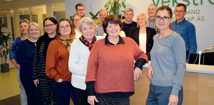 En livat gjeng som trives sammen! Her er 14 av de 22 ansatte samlet Vekstras resepsjon i Coopbygget.