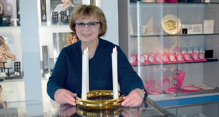 velge vakre smykker, tradisjonsrikt sølvbestikk og nydelige pyntegjenstander. Gavene du kjøper hos gullsmeden går arv gjennom generasjoner, og mange velger derfor edelt metall under juletreet. Mange besteforeldre kjøper barna, slik at de etter hvert har dusinet fullt. Gaver fra gullsmedbutikken høster som regel gledesutbrudd hos mottakeren! Velkommen innom for se på vårt gode utvalg nå adventstida! sier Kari (bildet) hos Gullsmed Fagerholt Storgata.