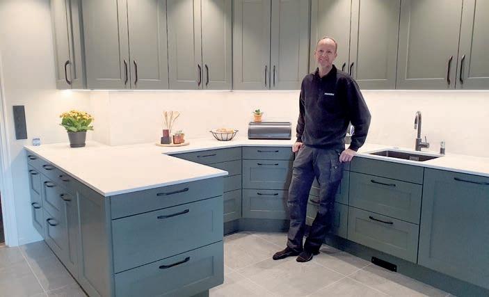 - Det er fantastisk gode plater, som du ikke får slitt ut. De er veldig fine å bake på, og du kan sette den varme steikepanna rett på benken, sier Cato. Platene er naturprodukter, laget av oppmalte mineraler som er presset sammen under høyt trykk og høy varme. Cato forteller om fornøyde kunder: - Noen kommer tilbake for å bestille sitt kjøkken nummer to – til hytta eller til ny bolig, sier han.