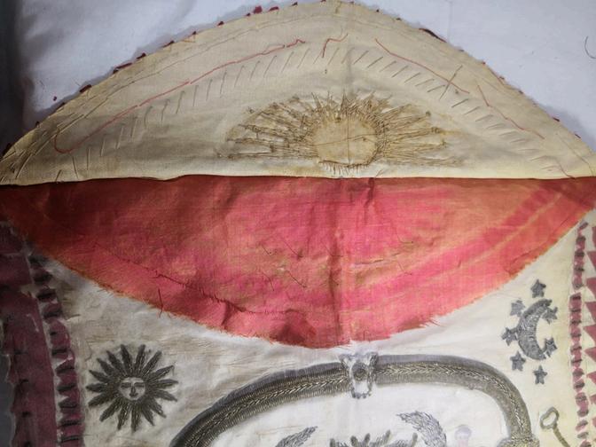 La restauración del Mandil concluyó de manera satisfactoria luego de un cuidadoso proceso que contempló diversas etapas de intervención, orientadas a estabilizar, conservar y preservar esta significativa pieza del patrimonio textil Masónico. Cada fase fue desarrollada con criterios éticos de conservación, priorizando la mínima intervención y el respeto por los valores históricos, simbólicos y materiales del objeto.