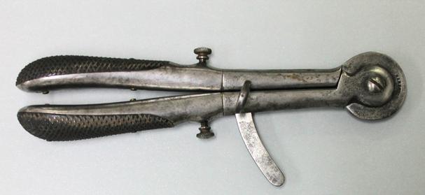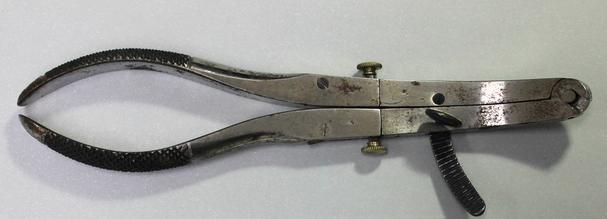 Detalle de un instrumento médico y del interior del Maletín con la marca de fábrica