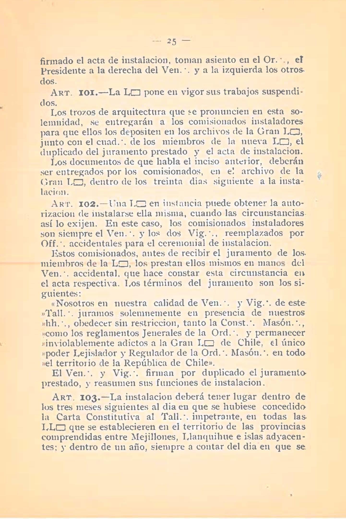 Obra donada a la Biblioteca de la Gran Logia de Chile por Nicolás Pinto Pardo miembro de la Respetable Logia de Estudios e Investigación Masónica Pentalpha Nº119 y de la Respetable Logia Andrés Bello Nº 186.