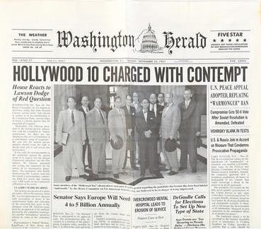 popular por haber formado parte de “Los diez de Hollywood”, profesionales varios condenados por desacato al Congreso, salvo en el caso del director Edward Dmytryk* (1908-1999), también encarcelado, que más tarde se retractó y colaboró con el Comité de Actividades Estadounidenses (HUAC). Un congresista de Misisipi John E. Rankin (1882-1960), miembro de la HUAC, declaró durante una rueda de prensa que “una de las tramas más peligrosas que se han instigado para el derrocamiento de este gobierno tiene su sede en Hollywood”.