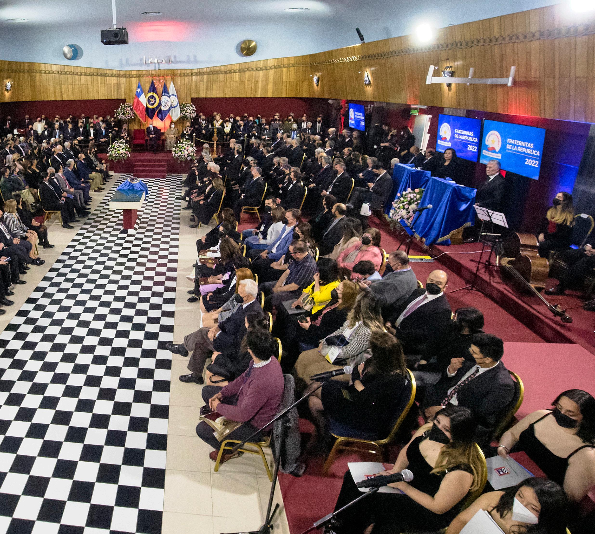 tantes de todos los poderes del Estado e invitados especiales, pisaban el Gran Templo de la Gran Logia de Chile. Un claro reconocimiento a que el acto se construía para ampliar la base cívica y reflexiva de la República, destinada a construir una perspectiva de futuro, entre aquellos hombres y mujeres que están llamados a generar las condiciones para una mejor calidad de vida de cada ciudadano y ciudadana.