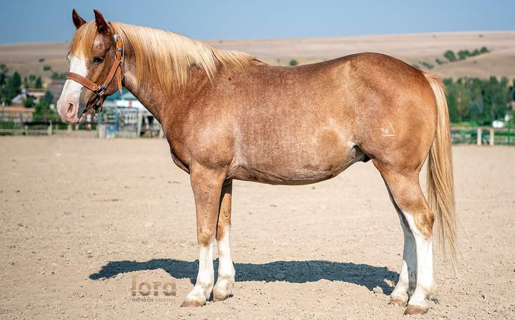Delbert is a 2010 flashy roan quarter draft pony cross. Don’t let the word pony fool! He is thick, stout and doesn’t know he is little! We have used Delbert for everything on the ranch and in the arena. He has been breakaway rope and calf roped on, heeled, picked up bucking horses and hazed in the bull dogging. Anyone can ride Delbert and get along with him, and he would excel as a junior rodeo horse the whole family could enjoy. He has been ridden and enjoyed by everyone from our six-year-old daughter Lydia to my husband Luke working the stock housing during the NFR! He was a standout taking bucking stock to and from the Thomas & Mac all week long! Find out more info www.jlhorses.com