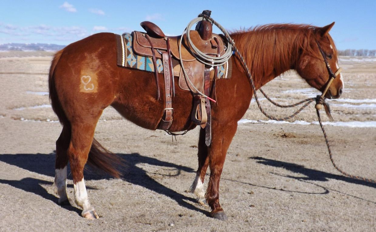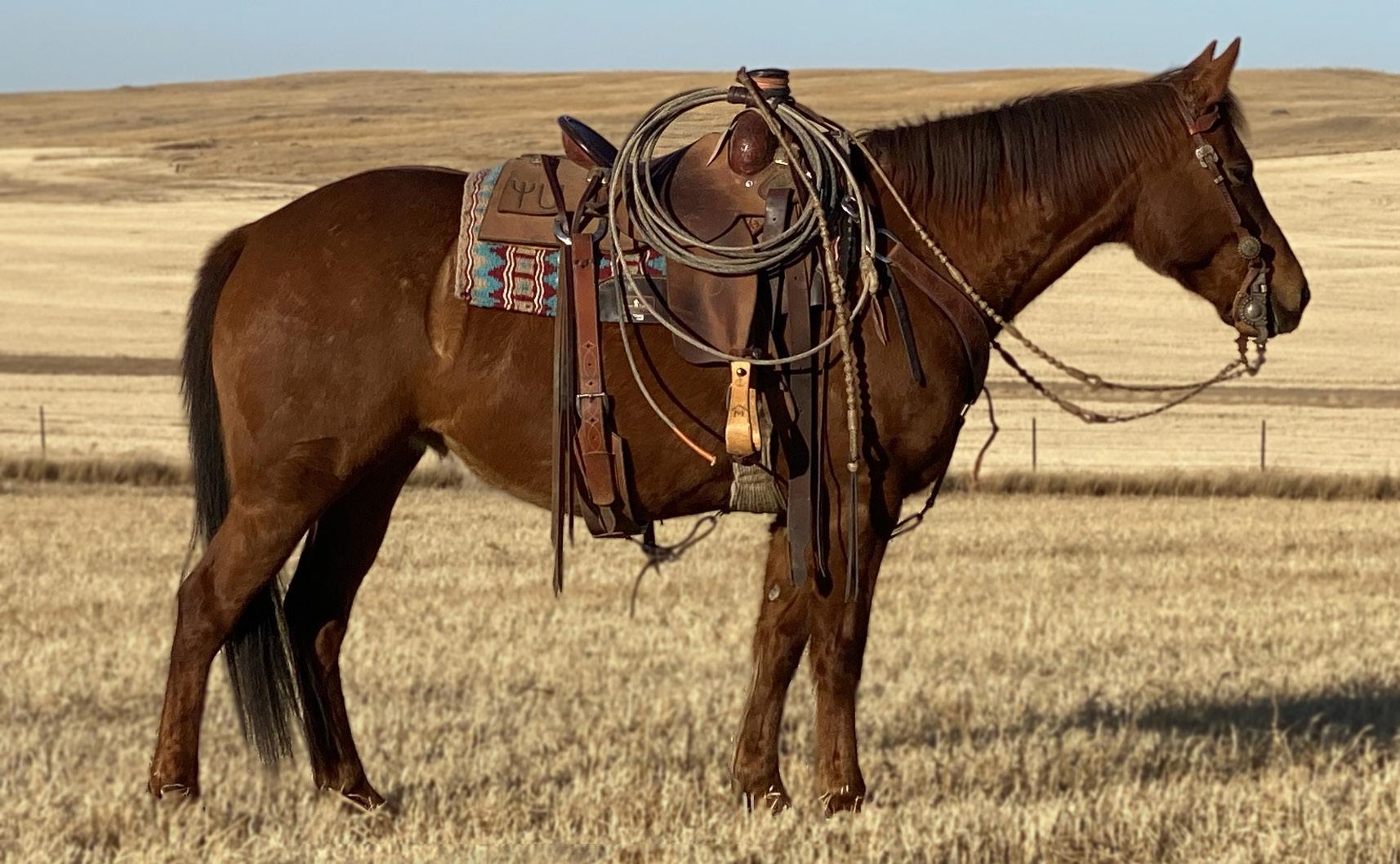 “Ruby” good footed, good withered, cute as a button and is the one horse that everyone fights over to ride! There isn’t anything this little mare can’t handle. She is a favorite here at the ranch and she can really travel outside. Ruby has a hard stop, good turnarounds, is cowy, quick footed, and gritty as they come. This mare shines as a heel horse and breakaway horse. She has won money in heeling, barrels, ranch rodeos and has been used by our son to junior rodeo on. This handy title mare has even been used to pick up bucking horses. From kids to grandmas and cowboys in between, this mare fills the bill!