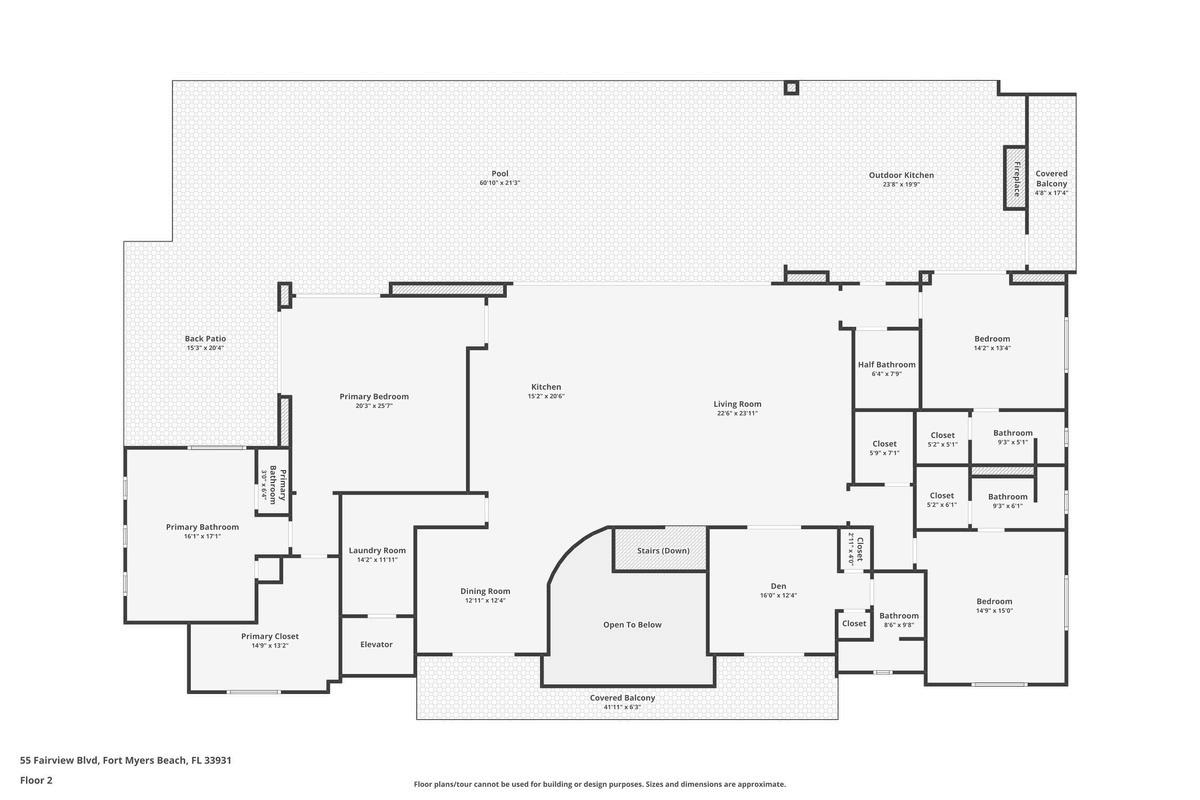 Designed for seamless indoor-outdoor living, the home features a Galvalume metal roof, hurricane-impact windows and doors, electric storm shutters, and electric sliders The elevated saltwater pool and spa can be heated by gas or electric and features a tanning ledge and water elements, while the fully equipped summer kitchen with swinging chairs and fireplace creates the ultimate entertaining space. The outdoor living area also includes a spacious yard, covered lanai, and an expansive dock ideal for fishing and waterfront relaxation