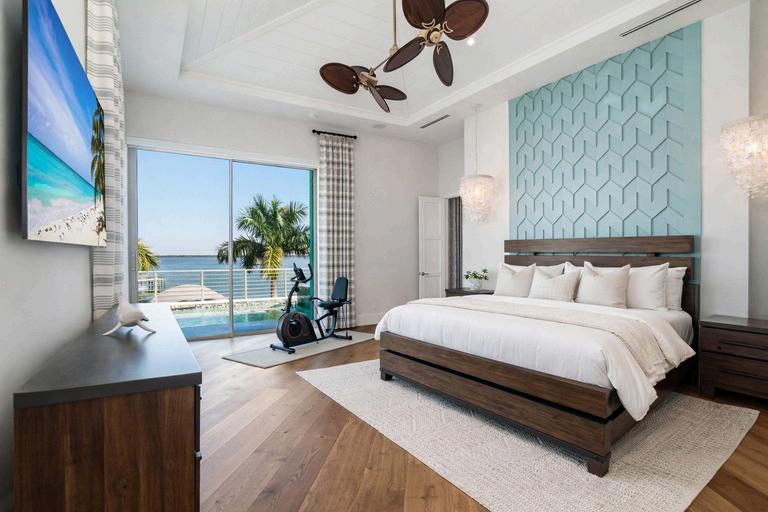 The chef’s kitchen showcases illuminated Cristallo countertops and backsplash, white and ocean-blue cabinetry, high-end appliances, and a butler’s pantry The primary suite serves as a private retreat with direct access to the pool deck, stunning water views, a large custom closet, and a spa-like bath featuring Cristallo counters, dual vanities, a soaking tub, and an oversized glass-enclosed shower with multiple showerheads Additional highlights include an automatic whole-home generator, two tankless water heaters, electric interior shades, Lutron lighting system, and surround sound, all ideally located near dining, Lovers Key and Bonita Beach, and just minutes from Times Square and the vibrant energy of Fort Myers Beach.