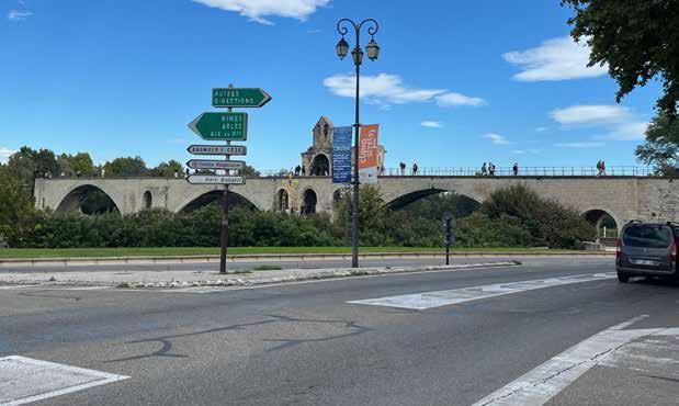 Oh, there is a bridge all right. Or part of one. While it once spanned the Rhône River, most of it is gone. It was built in the 1100s with 22 spans connecting the west and east banks, but most of it was destroyed by floods in the 17th century, and today, only four spans remain.
