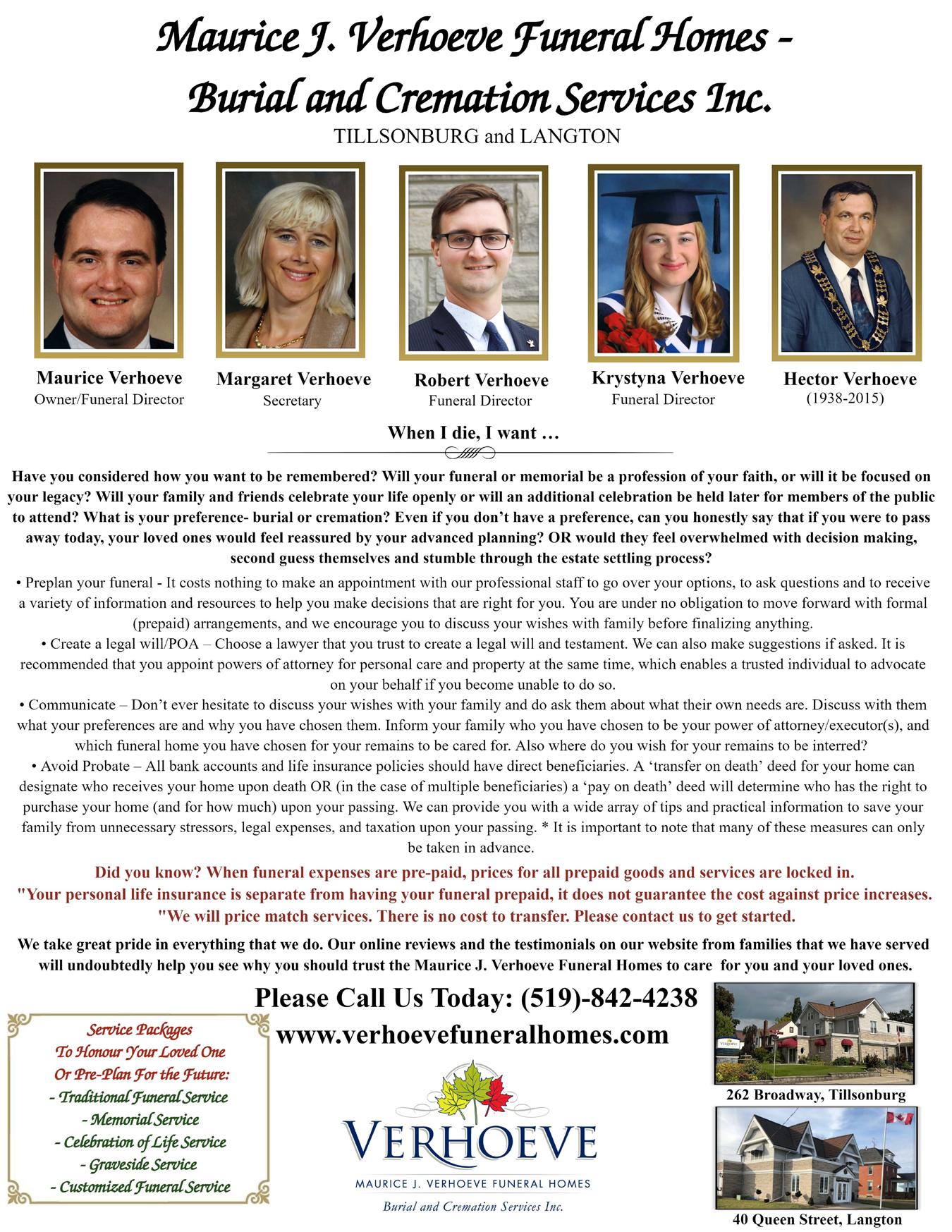 Our online reviews and the testimonials on our website from families that we have served will undoubtedly help you see why you should trust the Maurice J. Verhoeve Funeral Homes to care for