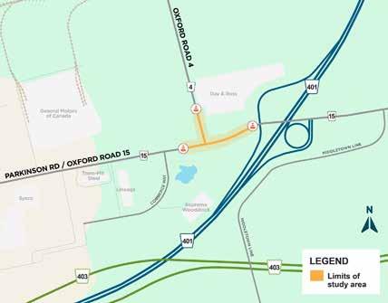 • Identify and evaluate alternatives to improve the Oxford Road 4 and Oxford Road 15 intersection;