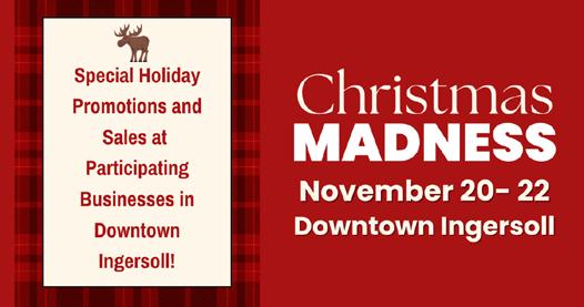 CHRISTMAS MADNESS IN DOWNTOWN INGERSOLL Thursday November 20 - November 22