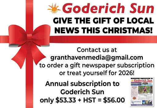 On Friday, December 12 at Goderich Place from 10 a.m. until 2 p.m.