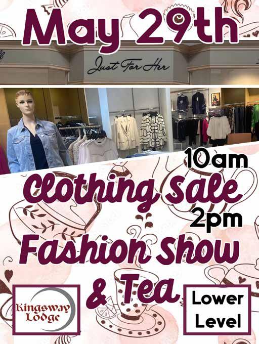 - Kingsway Lodge clothing sale – 10 a.m., Fashion show and tea – 2 p.m.