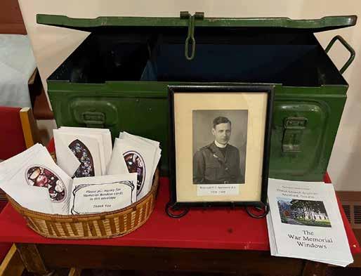 In all, there are four windows in the church created from the 125-plus shards collected by Appleyard. Two are in the nave and two more in the cloister between the church and the parish hall. Between the latter two is a window featuring Saint George commissioned and donated by Appleyard in gratitude for his safe return from the conflict.