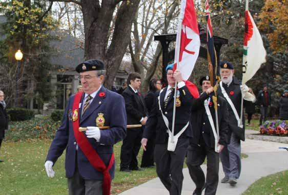 Members of the Army & Navy Air Force Veterans and the Royal Canadian Legion St. Marys stand in honour of the fallen and recognize the sacrifices of all who served during the Ceremony of Remembrance Nov. 11 at the town hall Cenotaph.