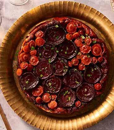 Arrange beets and carrots in single layer on top of caramel. Sprinkle with cheese and rosemary.