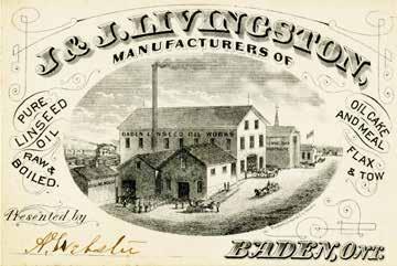 Not interested in providing raw materials to other companies, they began to build their own flax mills, first in Wellesley, then Baden (probably circa 1864 or 1865), and