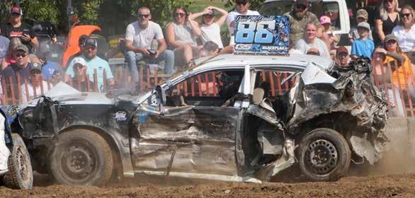 Featured events and entertainment at the Sept. 19-21 Donnybrook Fair in Walsh included a truck and tractor pull, car show, baby show, tug of war, ice cream eating contest, washer toss tournament, live music, professional wrestling, and kids zone (with a Full Circle animal display and inflatables from Super Air Bounce Castles)… but the highlight, every year, are the Saturday and Sunday demolition derbies. Multiple classes of vehicles competed in the derbies, including Figure 8, Junk Run, Impact Compact, trucks, pro stock, full-size old school/powderpuff, and the windshield class.