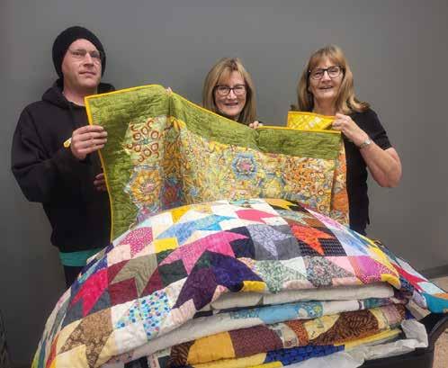 The Twilight Quilters of Norfolk County - a group of very talented and generous women - donate fabulous quilts to Indwell residents in Simcoe. “The quilts mean so much to the tenants,” says Jean Montgomery. From left are Robert Leonard, Indwell tenant; Diane Luke, Twilight Quilter; and Montgomery, Indwell staff.