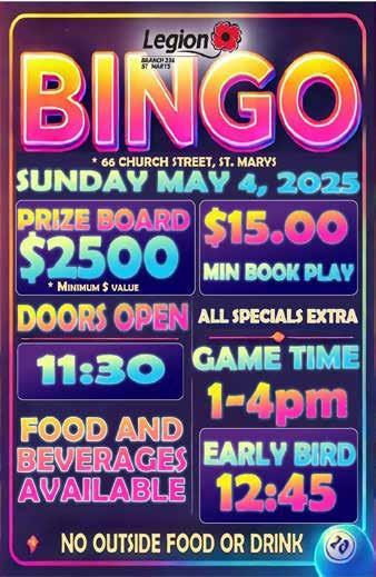 - Community dinner at St. Marys United Church – 5 p.m., Sponsored by St. Marys Lions Club