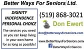 Wildwood Care Centre (Retirement Living). Private room accommodations for Senior living available, can accommodate couples. Price $2800 to $4600 monthly. Meals, basic care, medication management and staff available 24/7. For tours call Lisa at 519-284-3628.