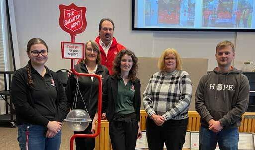 Pictured, left to right, are St. Marys Special Olympics Athletes Sean Darling, Hannah Buckland, and Matthew Gratton, who are joined by Tim Hortons staff member Brooklyn DeVries and Store Manager Shari McHardy.