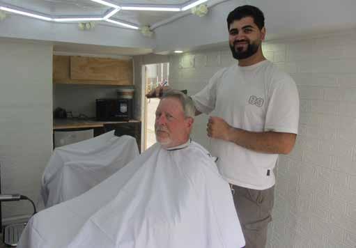 Barber Khaled Mefalani gives a Thorndale resident a haircut through Mefalani’s new mobile barbershop.