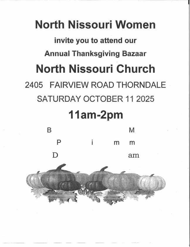- North Nissouri Women Thanksgiving bazaar at North Nissouri Church – 11 a.m. to 2 p.m.