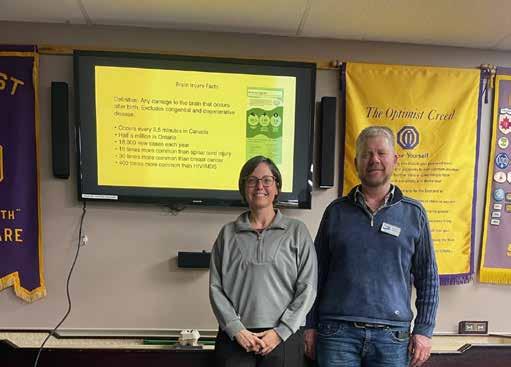 Nicole Ferreira, speech language pathologist who talked about brain injuries with the Shakespeare Optimist Club, is thanked by president Mike McNeil for giving an interesting and informative talk.