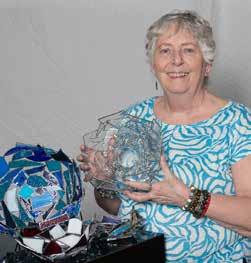 She creates various images in stained glass of different sizes and themes. She also creates bowls and items for gardens.