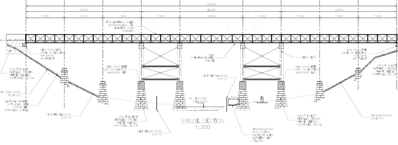 “The existing masonry piers/abutments will be restored where necessary and the centre eight piers will remain integral to the bridge structure where the others will be unused,” said Leo Ferreira, Tillsonburg’s Manager of Engineering.
