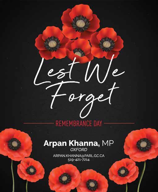 Prior to the start of the service at the cenotaph in front of the Tillsonburg Town Centre at 10:45, the silent walk will start at Veteran’s Memorial Walkway at the west end of Bridge Street at 10:#0 a.m. Participants will walk down Bridge Street to the cenotaph prior to the arrival of the Legion colour party.