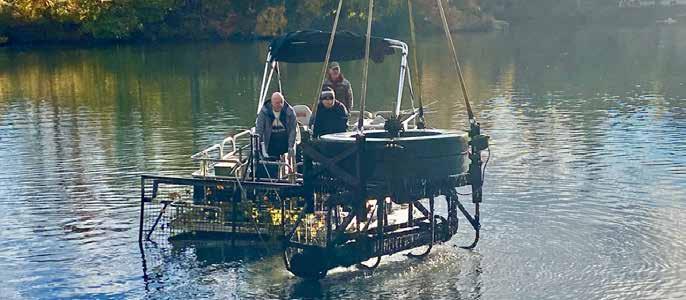 Lake Lisgar. Kin Just Matheson, a professional diver, disconnected the fountain at the bottom of the lake while club volunteers topside were assisted by Ivor Mann of 3E Power Services to remove the fountain from the water. It takes 50 hours for Kinsmen members to install, remove and maintain the fountain each year.