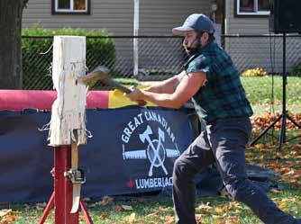 Although Tillsonburg was founded as a forge, hence its original name of Dereham Forge, lumber was a large part of early industry with a saw mill following after the forge. The Great Canadian Lumberjack show displayed some of the skills early settlers in Ontario would have used on a daily basis, such as log rolling pictured here, as entertainment at the free-of-charge event on Saturday in Memorial Park. The event featured much more as the bicentennial of the founding of the town was celebrated. See additional photos on Page 7.