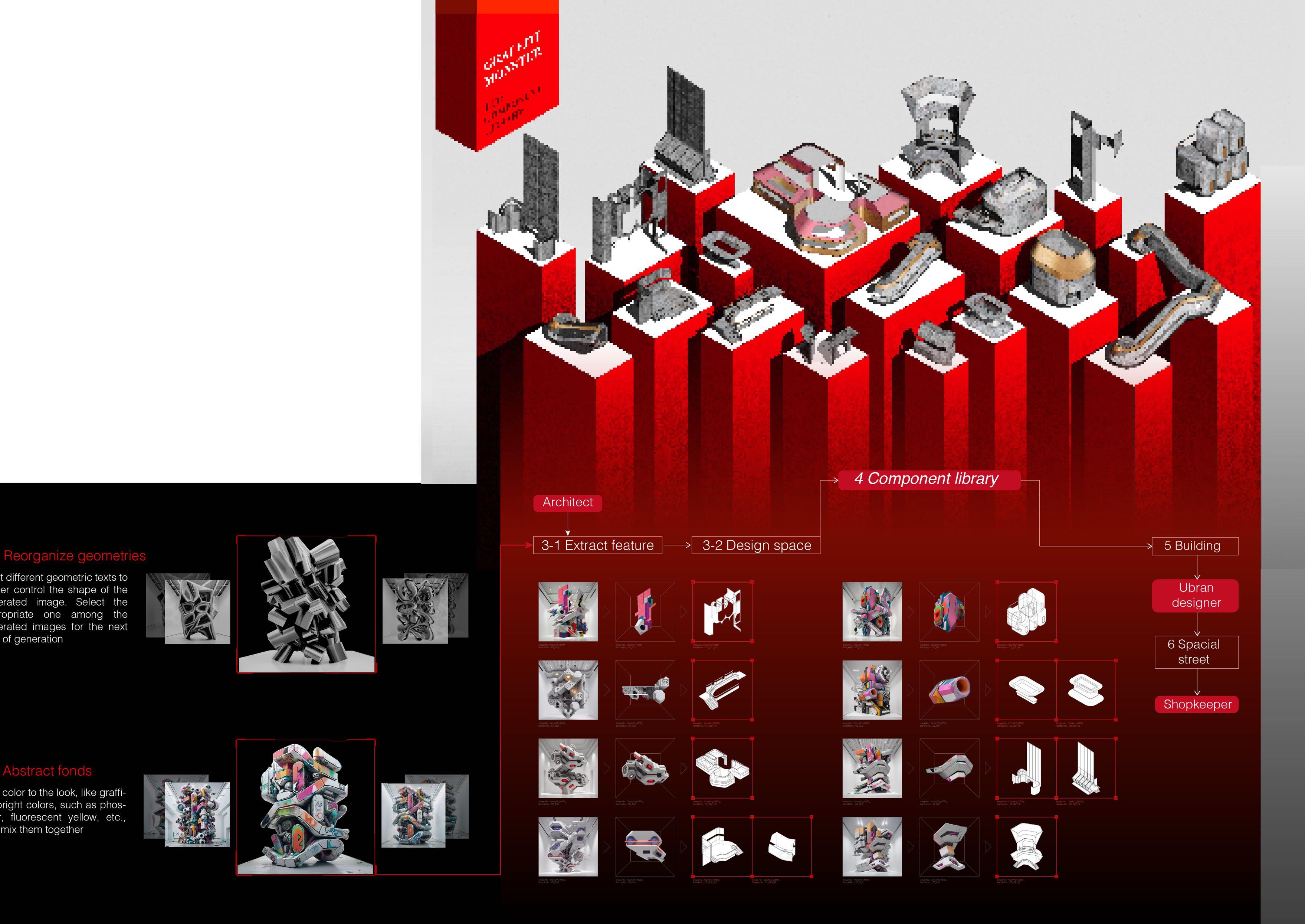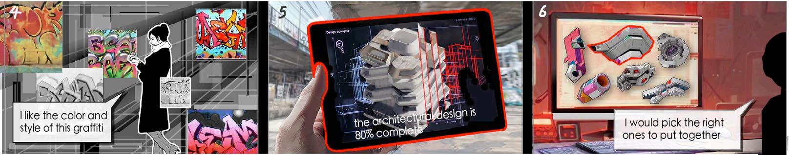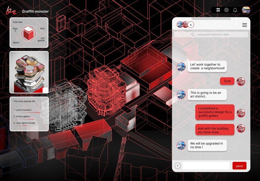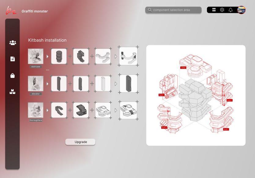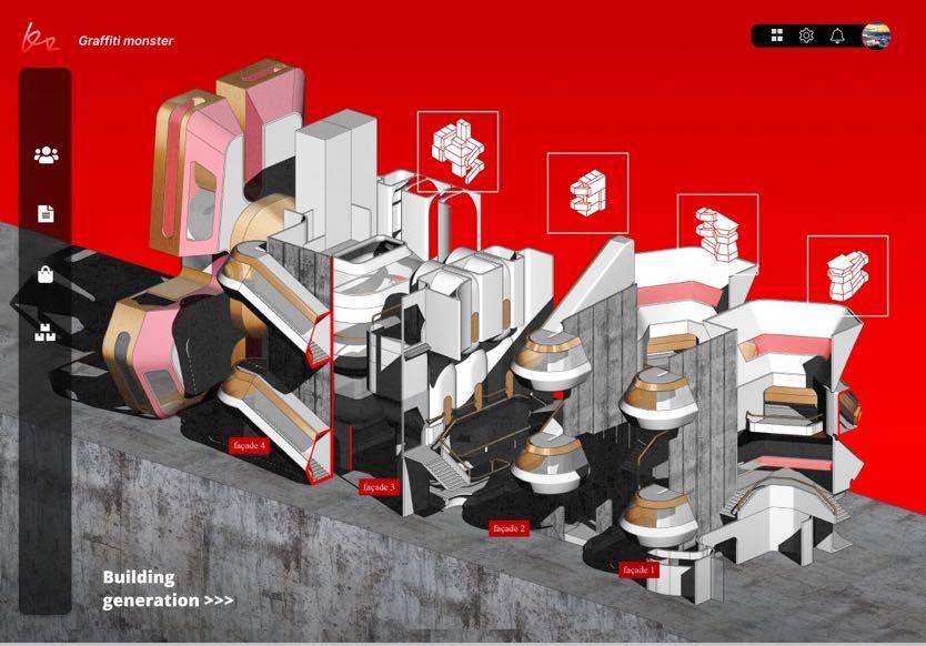 Players can select graffiti, AI transformation, and building parts in order to complete a complete building.